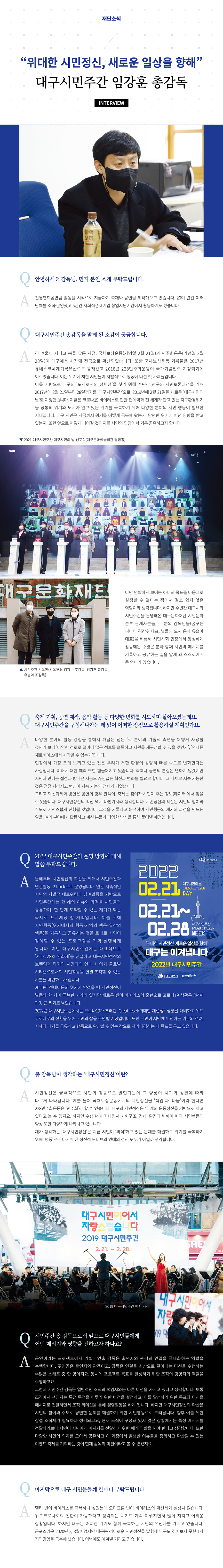 [재단소식] "위대한 시민정신, 새로운 일상을 향해" 대구시민주간 임강훈 총감독 인터뷰