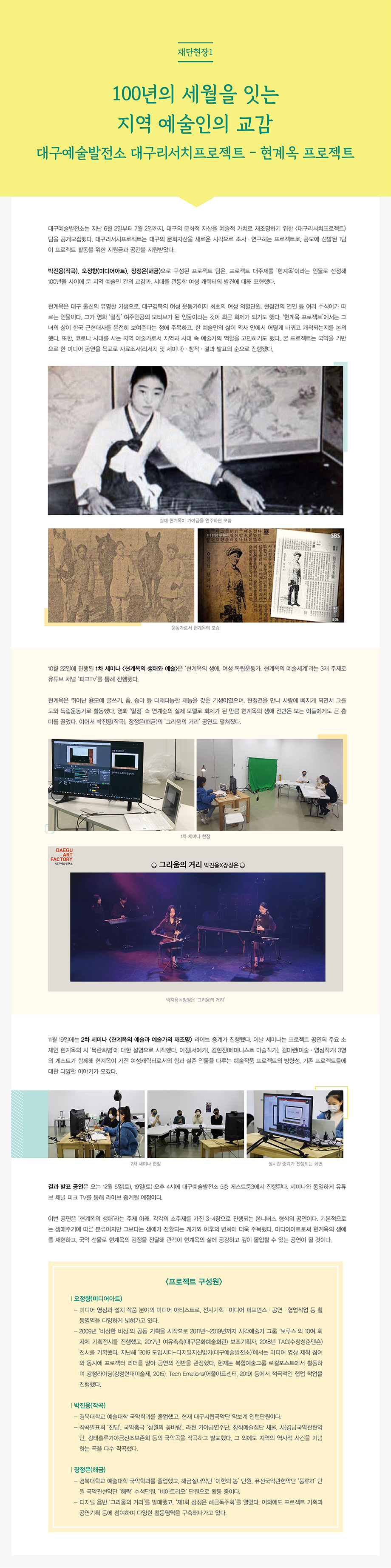 [프로젝트] 현계옥 프로젝트 100년의 세월을 잇는 지역 예술인의 교감