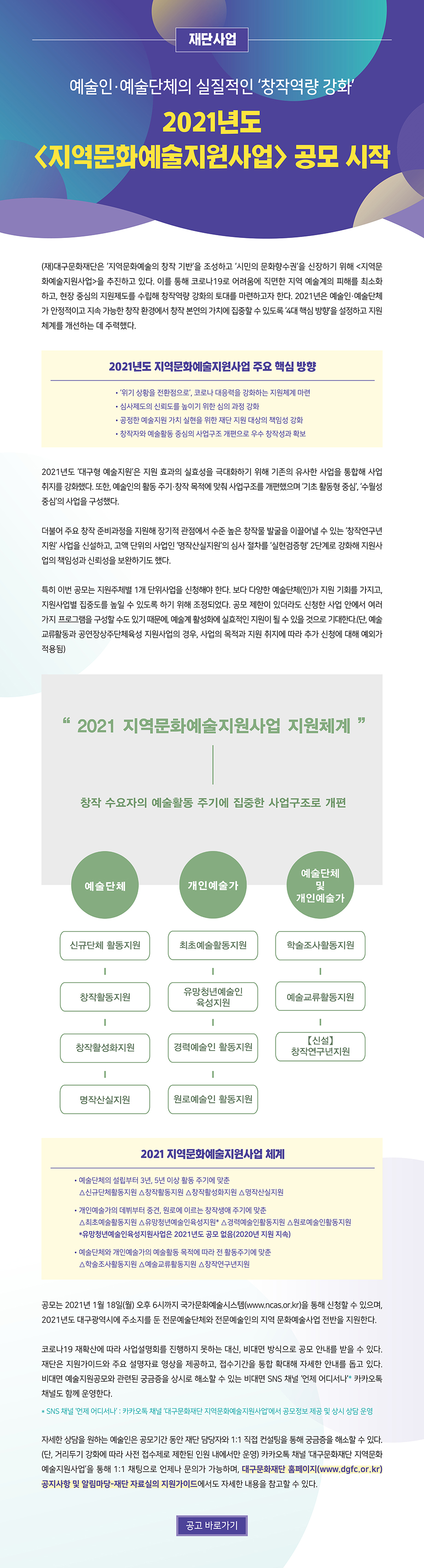 [재단사업] 2021년도 <지역문화예술지원사업> 공모 시작