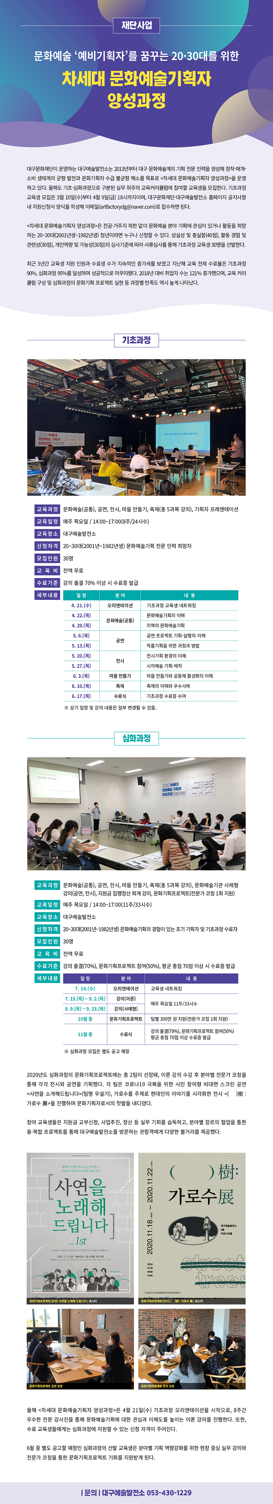 [재단소식] 문화예술 '예비기획자'를 꿈꾸는 20·30대를 위한 차세대 문화예술기획자 양성과정