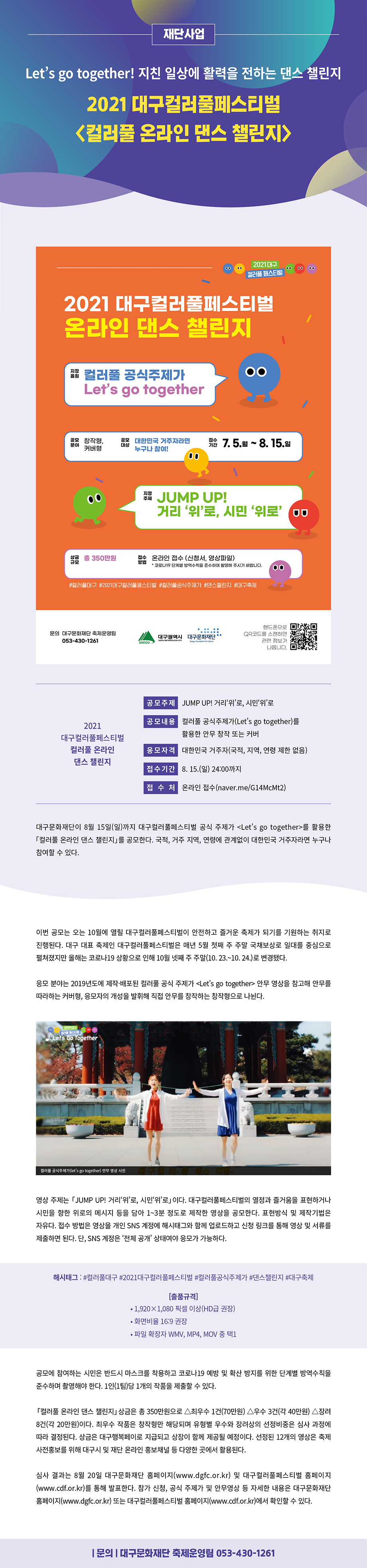 [재단사업] Let's go together! 지친 일상에 활력을 전하는 댄스 챌린지 2021 대구컬러풀페스티벌 <컬러풀 온라인 댄스 챌린지>