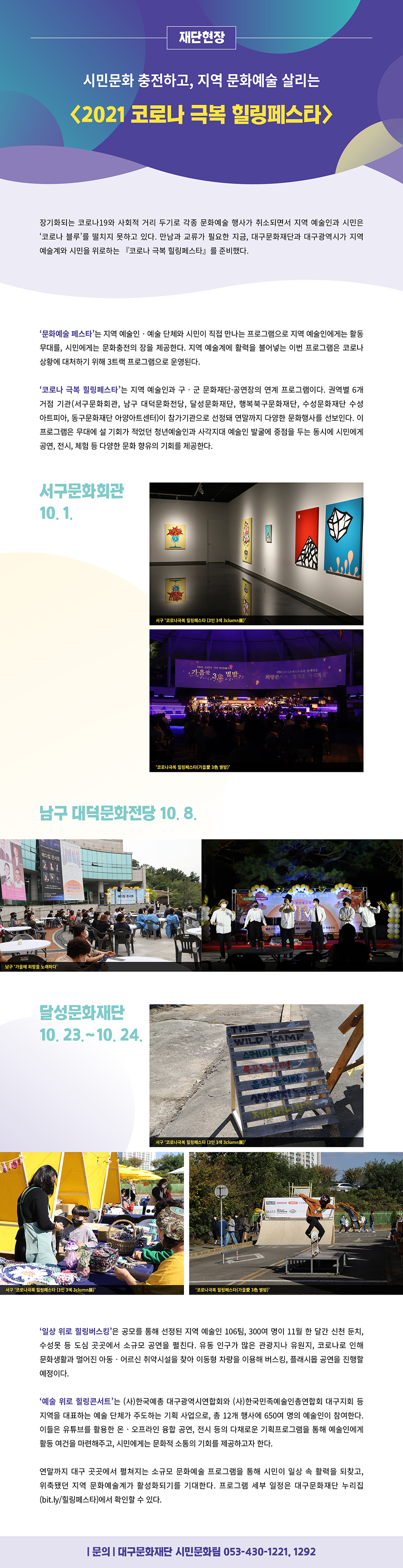 [재단현장] 시민문화 충전하고, 지역 문화예술 살리는 <2021 코로나 극복 힐링페스타>