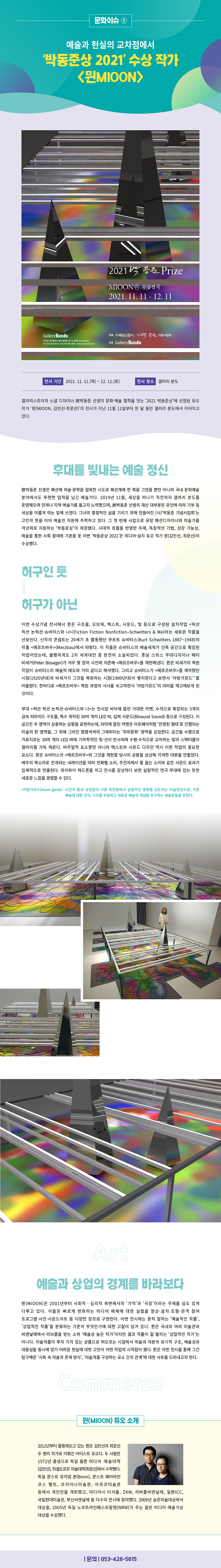 [문화이슈] 예술과 현실의 교차점에서 ‘박동준상 2021’수상 작가 <뮌MIOON>