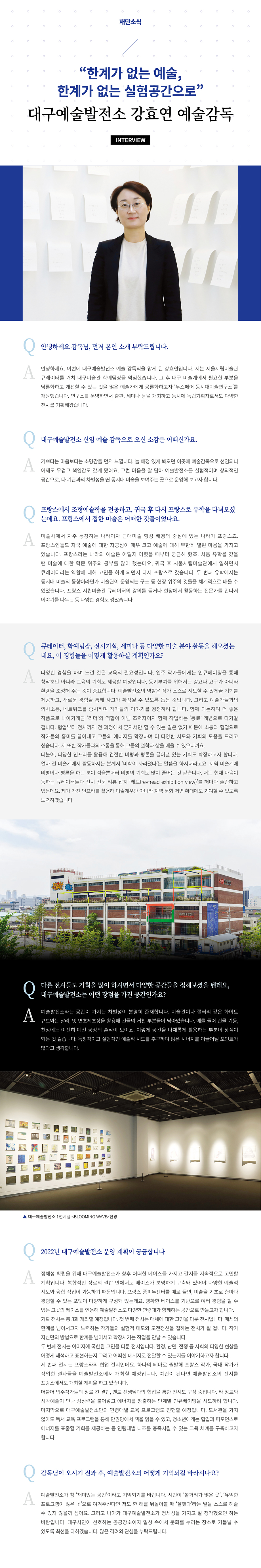 [재단소식] "한계가 없는 예술, 한계가 없는 실험공간으로" 대구예술발전소 강효연 예술감독 인터뷰