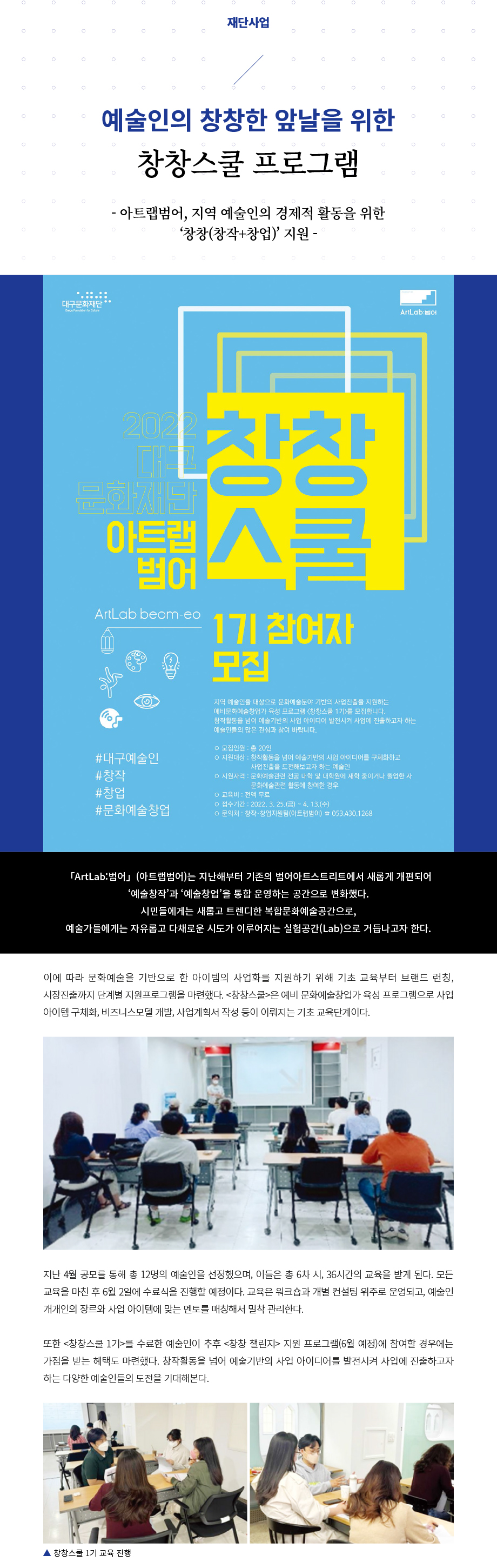 [재단사업] 예술인의 창창한 앞날을 위한 창창스쿨 프로그램