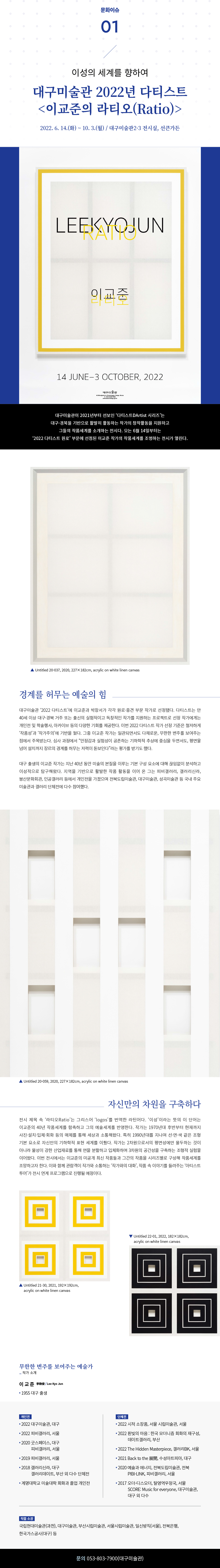 [문화이슈] 이성의 세계를 향하여 대구미술관 2022년 다티스트 <이교준의 라티오(Ratio)>
