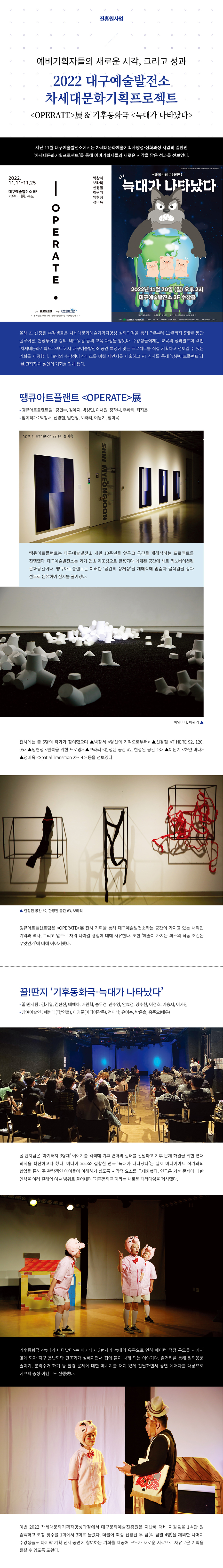 [진흥원사업] 예비기획자들의 새로운 시각, 그리고 성과 2022 대구예술발전소 차세대문화기획프로젝트 <OPERATE>展 & 기후동화극<늑대가 나타났다>
